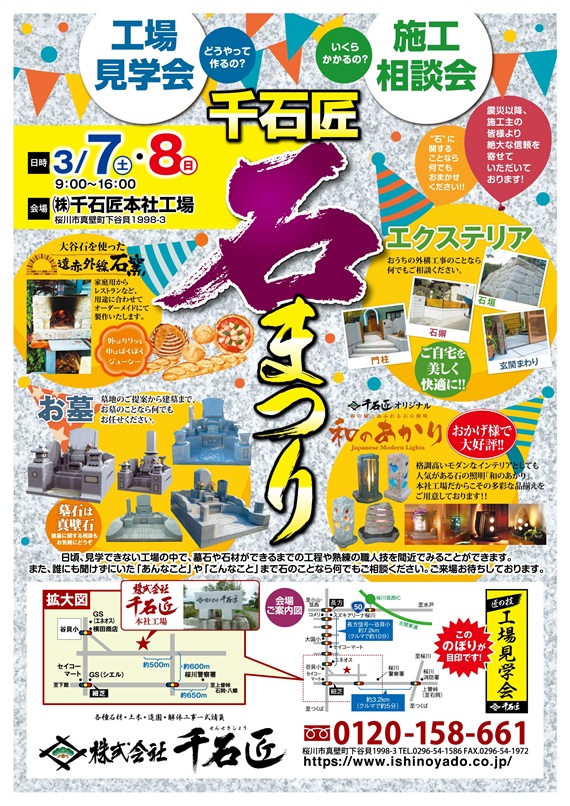 千石匠は、当社独自の創造的技術と年季と熟練を要した技術を持つ職人集団の石材店です。地元の”真壁石”を匠の技で創作したこだわりの墓石をはじめ、外構・造園・土木工事、千石匠オリジナル企画”和のあかり”等、様々な仕事を手掛けております。