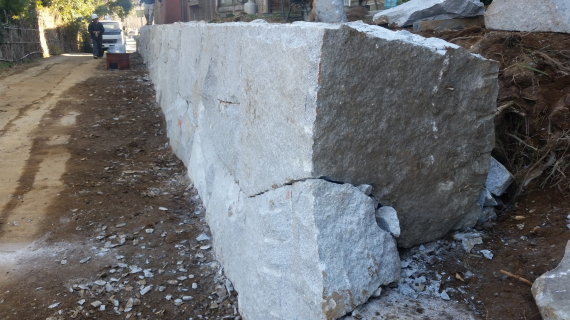 茨城県石岡市において、真壁石を使用した石垣積みが完成しました。千石匠の経験豊富な職人ならではの昔ながらの技法を駆使したものです。